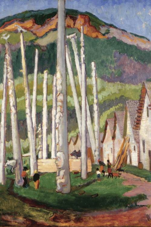 Hembroff and her first husband Frederick Brand, a mathematics professor at UBC, already a fan of Carr’s paintings both vigorously promoted Carr’s work by organizing exhibitions on campus and instigating the acquisition of Kispiox Village 1912 by the provincial government in 1933 for $166, the first Carr artwork purchased by the provincial government.