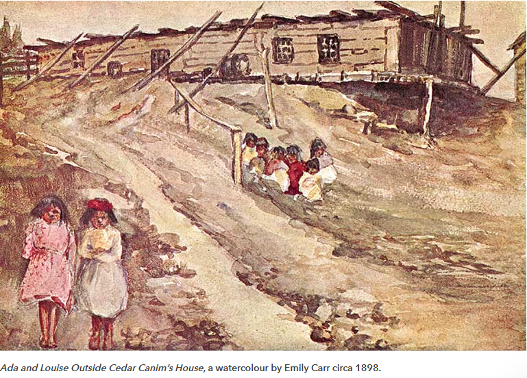 Upon her return home she taught art for several years. In 1898 Emily visited friends at the Indian Mission at Ucluelet on the West Coast of Vancouver Island. She was deeply stirred by the Indians. Upon her first appearance among them she was accepted by the patriarch of the village who said she was fearless, “not stuck up,” and knew how to laugh. She visited them in their houses, and they named her Klee Wyck—Laughing One because her sense of fun bridged the language gap.