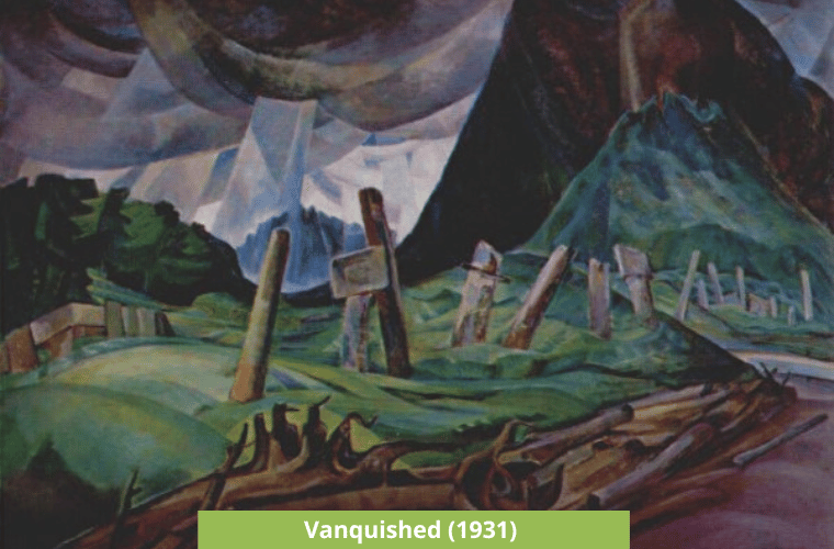 Art circles elsewhere knew nothing of Emily Carr, but Marius Barbeau, Director of the National Museum at Ottawa, heard of her paintings from his Tsimshian interpreter, He sought her out and in 1927 the Canadian National Gallery invited her to show sixty of her paintings at the Exhibition of Northwest Coast Art in Ottawa.