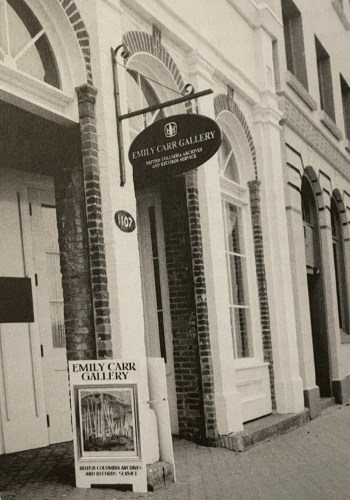 Her professional life soon brought her back to Emily Carr. In 1977, recognizing Mason’s growing expertise, the office of BC politician Grace McCarthy recruited her to establish and manage the new Emily Carr Gallery at 1107 Wharf Street, in the building once occupied by Emily’s father’s warehouse that he sold to Charles Rithet in 1988 just months before his death. Over the next 11 years, Mson curated 27 exhibitions drawn largely from the Provincial Archives, illuminating Carr’s work and that of other BC artists.